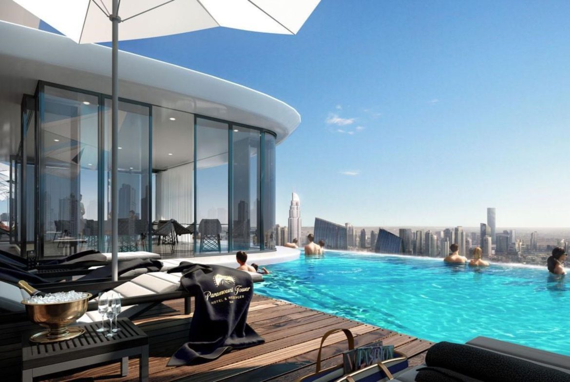 DAMAC Towers by Paramount Hotels & Resorts is a premium high-rise complex in the prestigious Business Bay area in the center of Dubai, next to the Dubai Creek. The three towers house 1,200 luxury suites with stylish studio-like interiors inspired by the world’s iconic studios. The fourth tower is the site for a hotel with 700 extravagant rooms. operated by Paramount Hotels & Resorts. The towers have many luxurious amenities, including a stunning podium pool with a huge sundeck and panoramic views of the Burj area.