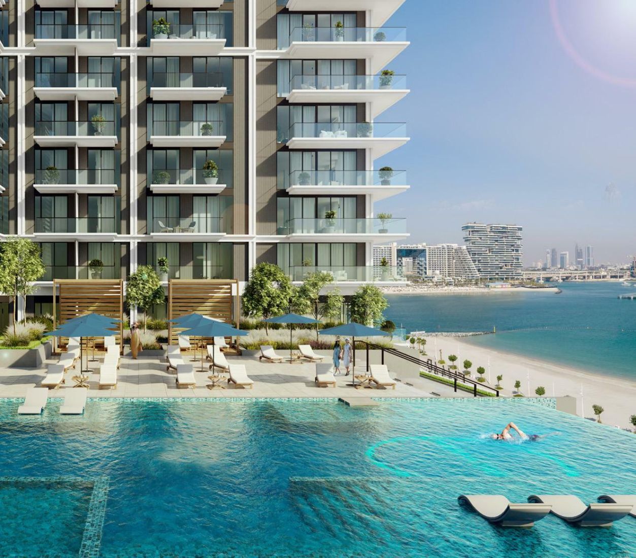 Beach Mansion is a part of Emaar Beachfront, a unique residential community comprising 27 exclusive towers offering panoramic views of the Dubai Eye and Dubai Marina. The area is conveniently connected to the rest of the city through Sheikh Zayed Road which belongs to the main roads of Dubai. From here, future residents can reach Downtown Dubai, Burj Khalifa, and Dubai Mall within 35 minutes by car.