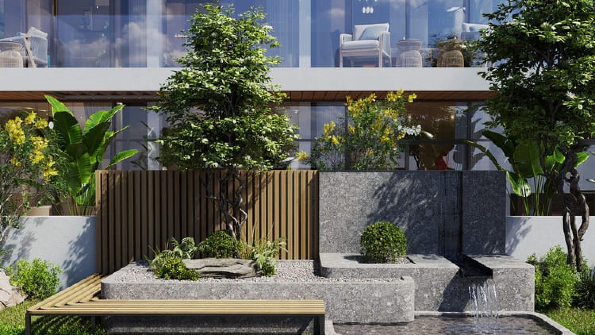 - Garden with fountains